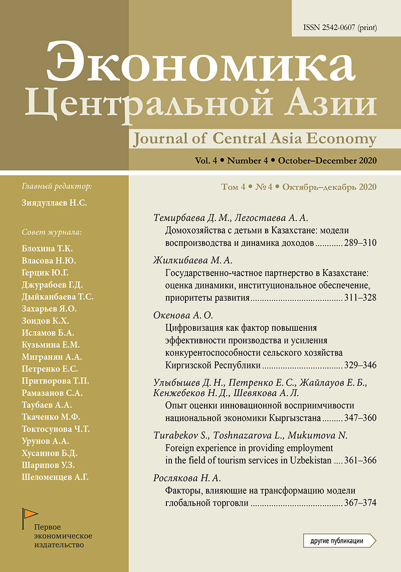 Journal of Central Asia Economy is devoted to the economy of a vast region that includes Kazakhstan, Tajikistan, Uzbekistan, Turkmenistan, Kyrgyzstan and the nearby area.Special emphasis is placed on economic, legal, social and technological issues of this region's countries economy.