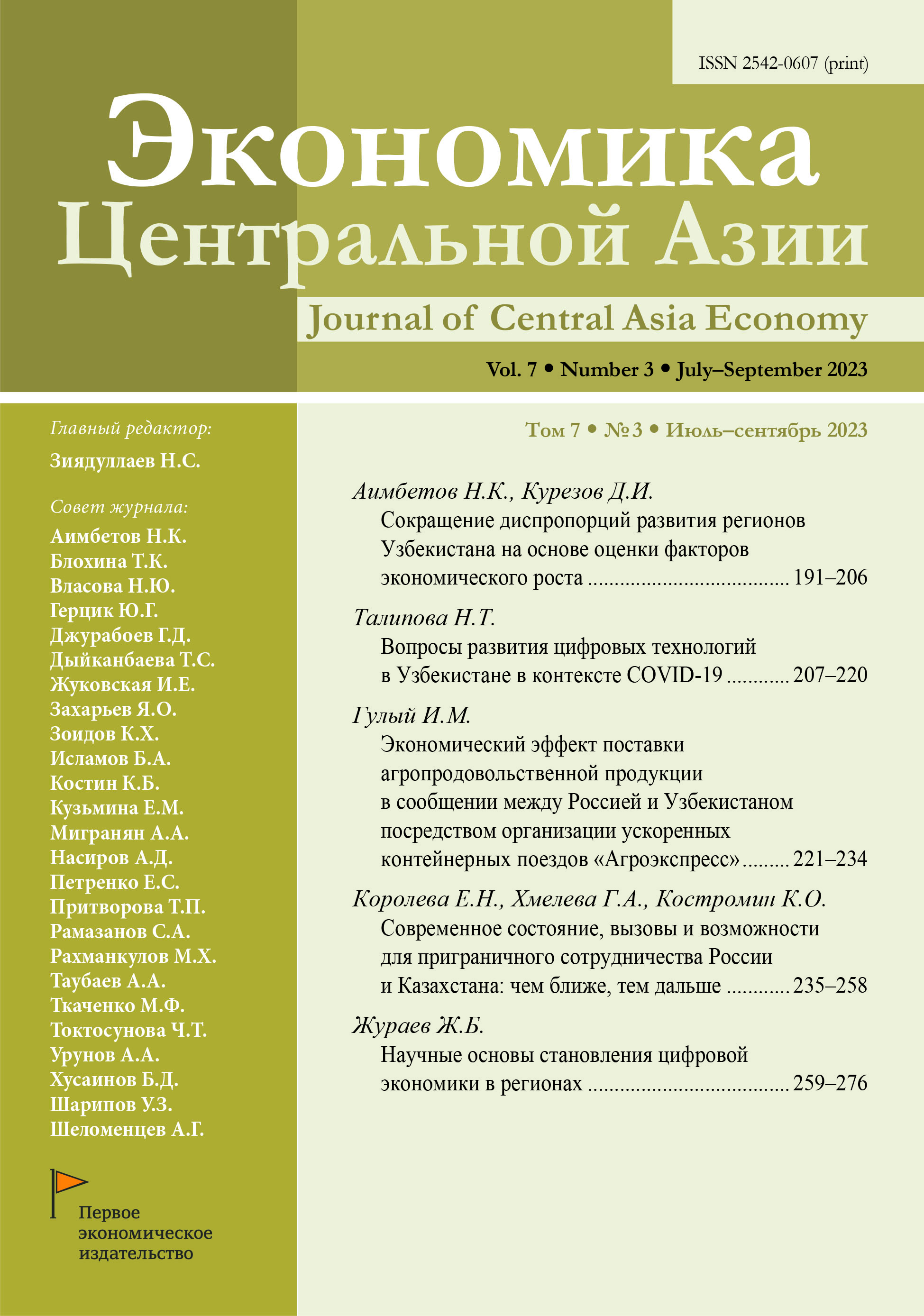 ЭКОНОМИКА ЦЕНТРАЛЬНОЙ АЗИИ – научно-практический рецензируемый журнал, посвященный экономике обширного региона, включающего Казахстан, Таджикистан, Узбекистан, Туркменистан, Кыргызстан, а также соседние области.Особое внимание в журнале уделяется экономическим, правовым, социальным и технологическим вопросам экономики стран данного региона.