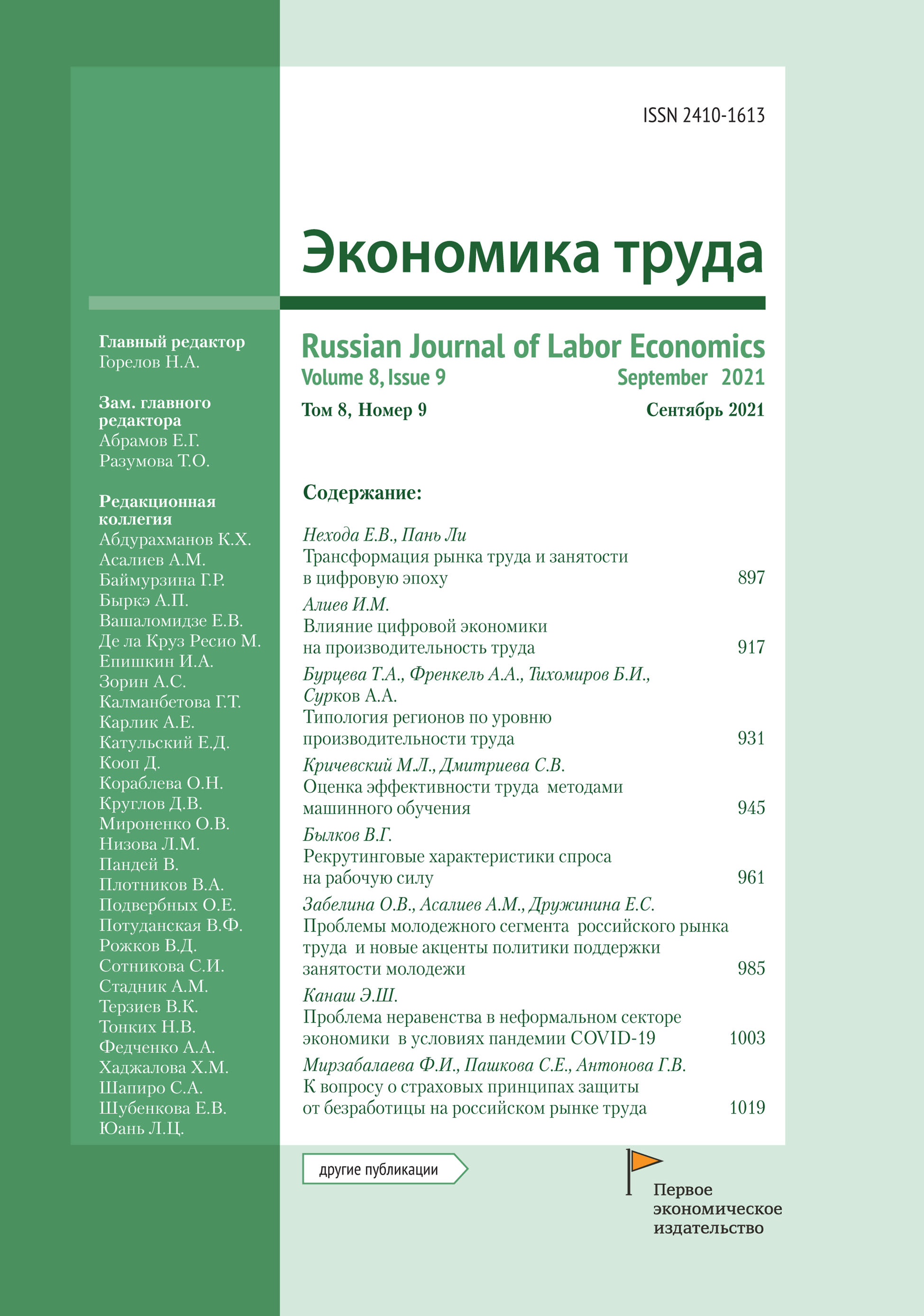 - Official international title:Russian Journal of Labour Economics