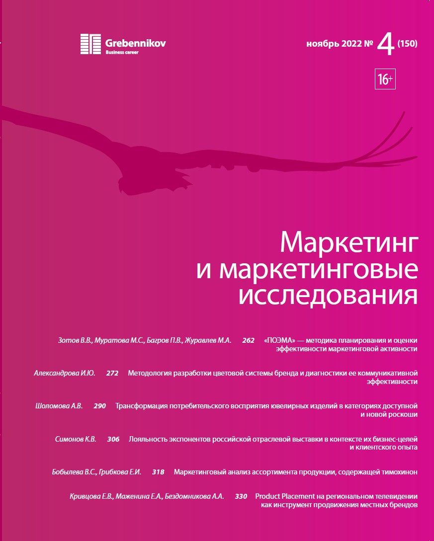 Marketing and Marketing Research journal aims to promote the most important findings that define new study fields in marketing, as well as the current state, technologies, and prospects for the development of practical marketing research.The journal publishes articles devoted to market and consumer research, product and service positioning, the formation of marketing strategies to convey the consumer value of goods and services to consumers, marketing brand management, implementation of customer-centricity, customer relationship management (CRM), approaches to data-driven marketing, pricing of products and services, and optimization of marketing channels for product distribution in the context of digital transformation. The journal gives highest priority to articles devoted to the promotion of domestic brands of goods and services in the context of import substitution, as well as the use of artificial intelligence and other digital technologies in marketing activities.