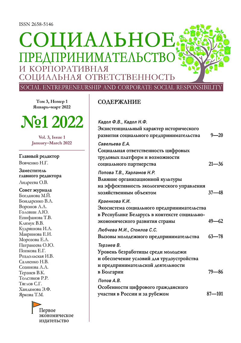 «Социальное предпринимательство и корпоративная социальная ответственность» – новый научно-практический рецензируемый журнал, в котором публикуются научные работы, отражающие результаты теоретико-методологических и прикладных исследований по экономическим наукам и смежным специальностям.В актуальной повестке – теория социальной экономики, место социального предпринимательства и корпоративной социальной ответственности в современной экономике, в контексте концепции устойчивого развития человечества, социальной безопасности, вопросы теории и практики социальных инноваций, социального инвестирования, финансового обеспечения социальных проектов и деятельности, краудфандинга, социального государственно-частного партнерства, краудсорсинга, цифровизации, государственного регулирования и поддержки, влияния на качество жизни и человеческий капитал, другие направления исследований.