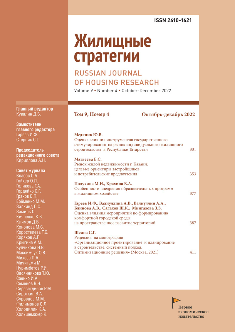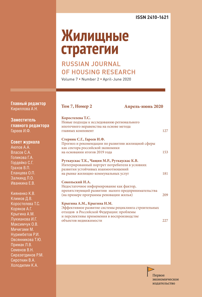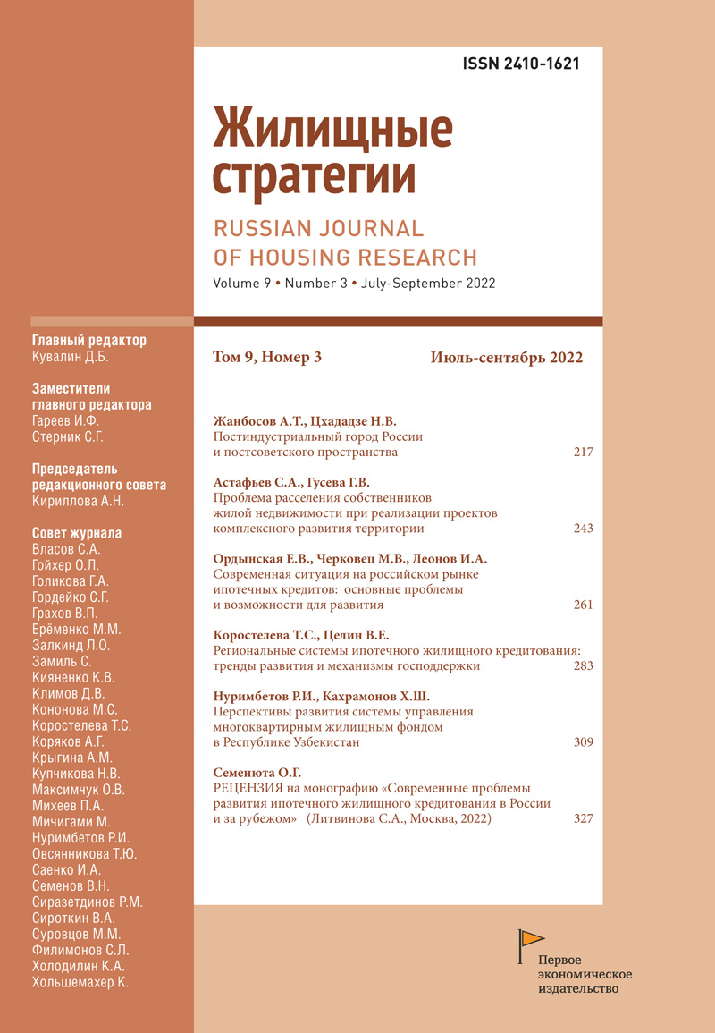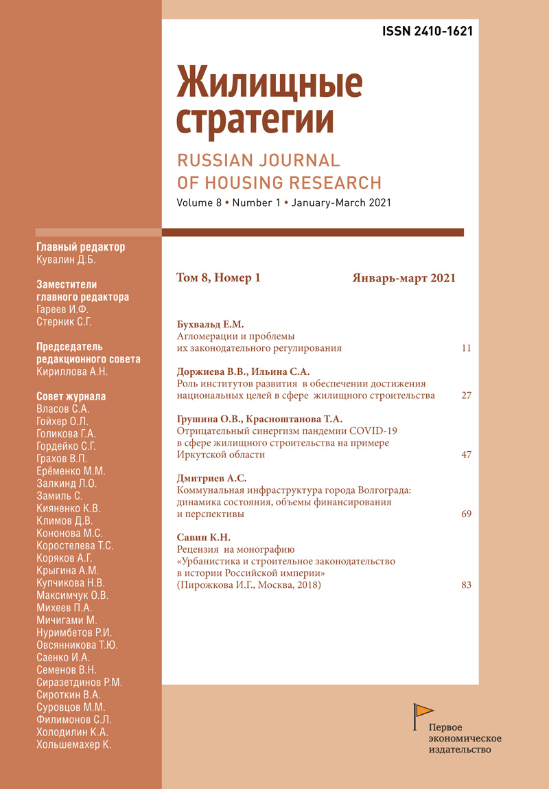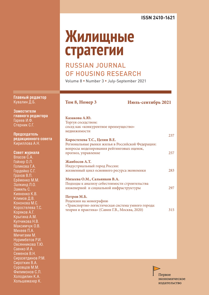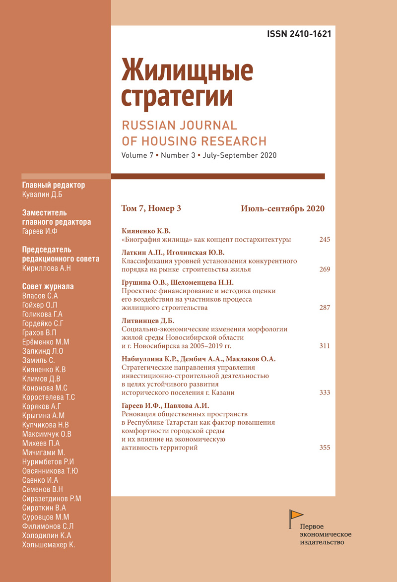 Журнал ЖИЛИЩНЫЕ СТРАТЕГИИ посвящен исследованиям в области формирования жилищной стратегии, обеспечивающей оптимальную структуру жилищного строительства и жилищного фонда, удовлетворяющей потребностям различных категорий граждан. В журнале публикуются обзорные и оригинальные статьи, содержащие результаты отечественных и зарубежных исследований и практической деятельности в области развития рынка жилой недвижимости и жилищного строительства. Рассматриваются актуальные вопросы государственного регулирования жилищной политики, механизмы государственно-частного партнерства, а также региональные особенности жилищной сферы.Главная цель журнала – ознакомление с результатами научных исследований в области решения жилищного вопроса и дальнейшее их обсуждение.