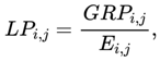 где LPi,j – ПТ работников в отрасли i региона j; GRPi,j – ВРП, произведенный в отрасли i региона j; Ei,j – количество занятого населения в отрасли i региона j.