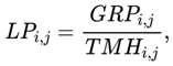 где LPi,j – ПТ работников в отрасли i региона j; GRPi,j – ВРП, произведенный в отрасли i региона j; TMHi,j – общее количество отработанных человеко-часов в отрасли i региона j.
