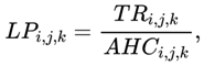 где LPi,j – ПТ работников в отрасли i региона j вида бизнеса k; TRi,j – совокупная годовая выручка в отрасли i региона j вида бизнеса k; AHCi,j – среднесписочная годовая численность занятого населения в отрасли i региона j вида бизнеса k.