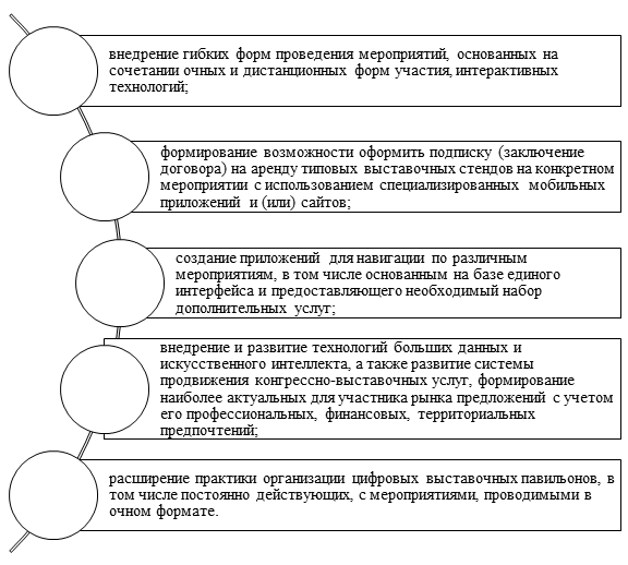 Среди направлений развития цифровизации в сфере конгрессно-выставочной деятельности стоит отметить следующие [12]: