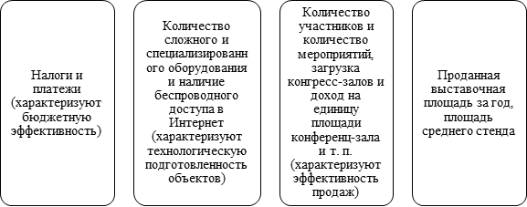 Среди показателей оценки уровня общего развития конгрессно-выставочной деятельности в России в основном выделяют количественные показатели, которые представлены на рисунке 4.