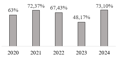 Рисунок 1 – Динамика изменения среднего балла по противодействию коррупции в компаниях с государственным участием РФ в 2020 – 2024 гг.