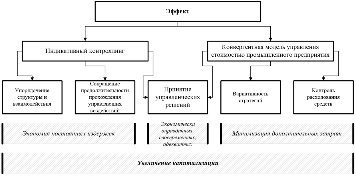 Рисунок 7. – Схема формирования эффекта от индикативного контроллинга и в его составе конвергентной модели управления стоимостью промышленного предприятия