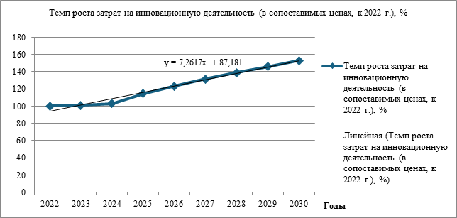 Рисунок 2 – Анализ темпа поста затрат на инновационную деятельность, в сопоставимых ценах 2022 года в РФ