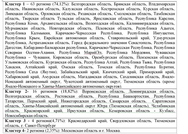 Thus, these regions can be considered leading and reference ones relative to regions that belong to other clusters.