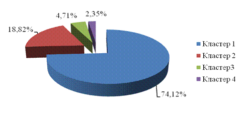 На рис.5 представлено процентное соотношение получившихся кластеров.