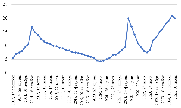 19. Официальный сайт Центрального Банка России. [Электронный ресурс]. URL: https://cbr.ru/hd_base/KeyRate/ (дата обращения: 06.06.2025г.).