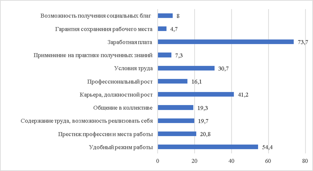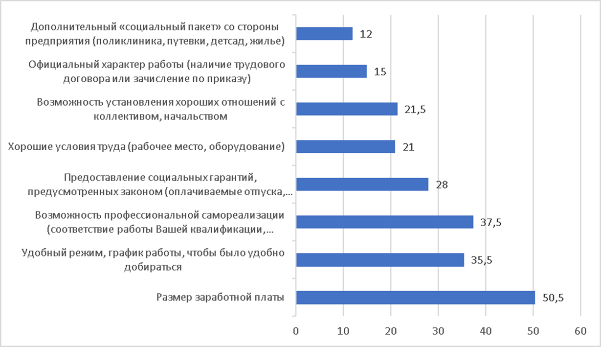 Источник: составлено авторами по результатам опроса ВЦИОМ Не только деньги, или О факторах выбора работы в России. 4.04.2024 // https://wciom.ru/analytical-reviews/analiticheskii-obzor/ne-tolko-dengi-ili-o-faktorakh-vybora-raboty-v-rossii