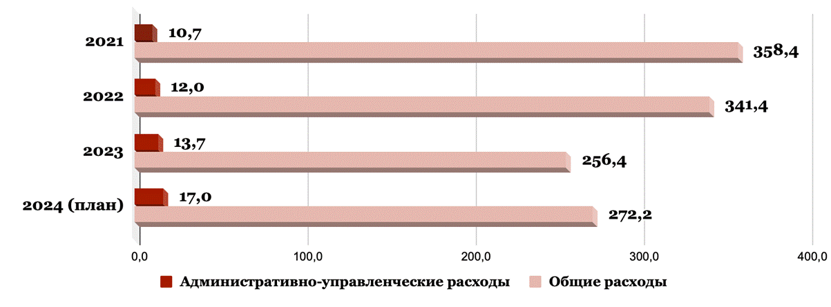 Рисунок 2. Административно-управленческие расходы эндаумента “Третьяковской галереи” за период 2021-2024 гг.