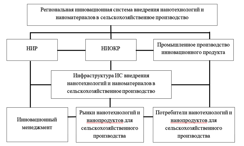 Keywords: nanotechnology implementation system, nanomaterials, innovation process, system, infrastructure, agricultural production