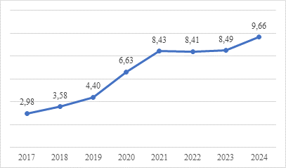 В 2024 г. доходы от электронной коммерции в стране составили 9,66 млрд. долл. США. Для сравнения в лидирующих странах мира этот показатель значительно выше и составляет 1182,92 млрд. долл. в США, 1141,73 млрд. долл. в Китае и 166,85 млрд. долл. в Японии.