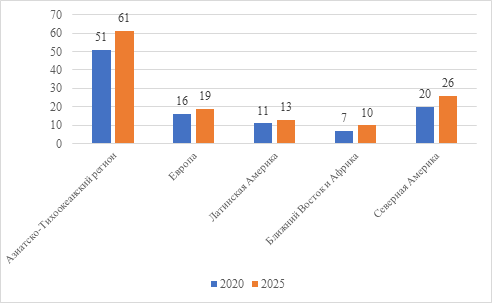 Источник: Global: e-commerce revenue by region 2025 // Statista Market Forecast [Electronic resource] – Режим доступа: https://www.statista.com/forecasts/1117851/worldwide-e-commerce-revenue-by-region (дата обращения 10.07.2025)