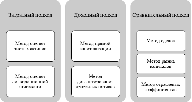 Существующие методы оценки справедливой стоимости в рамках затратного, доходного и сравнительного подходов представлены на рисунке 1.
