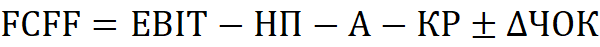 Также следует обратить внимание, что оценка может проводиться как с учетом общей стоимости бизнеса, включая собственный и заемный капитал, так и только собственного капитала. В первом случае расчеты основываются на свободном денежном потоке для всей компании (FCFF), а во втором – на свободном денежном потоке для собственного капитала (FCFE). В данной работе будет использоваться свободный денежный поток для компании, который рассчитывается по формуле (4):