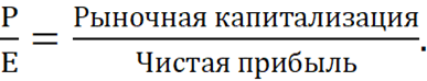 Мультипликатор P/E (Price to Earnings) показывает, сколько инвесторы готовы заплатить за одну единицу текущей прибыли компании (формула (7).