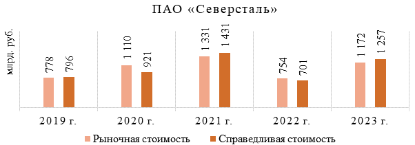 Рисунок 2 – Справедливая и рыночная стоимости ПАО «Северсталь»