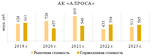 Рисунок 3 – Справедливая и рыночная стоимости АК «АЛРОСА»
