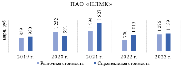 Что касается ПАО «НЛМК», то компания однозначно является недооцененной в исследуемый период, за исключением 2020 года, когда ее рыночная стоимость превысила справедливую на 20%.