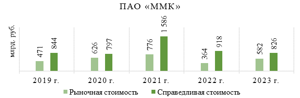 Рисунок 5 – Справедливая и рыночная стоимости ПАО «ММК»