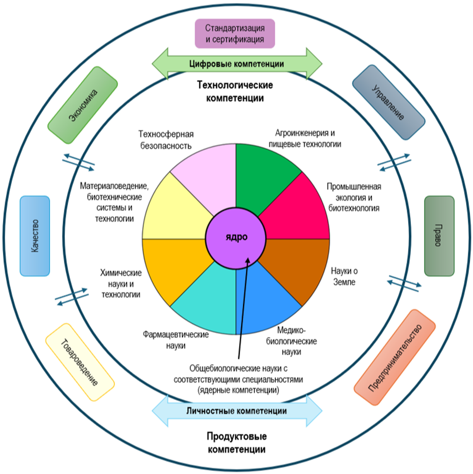 Более того, при организации подготовки кадров для биоэкономики возникает необходимость освоения обучающимися не только различных базовых («ядерных») дисциплин в области наук о жизни, но и финансовых, организационно-экономических аспектов биоэкономической деятельности.