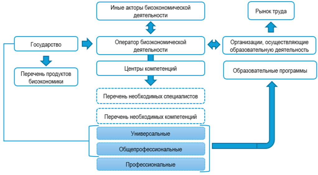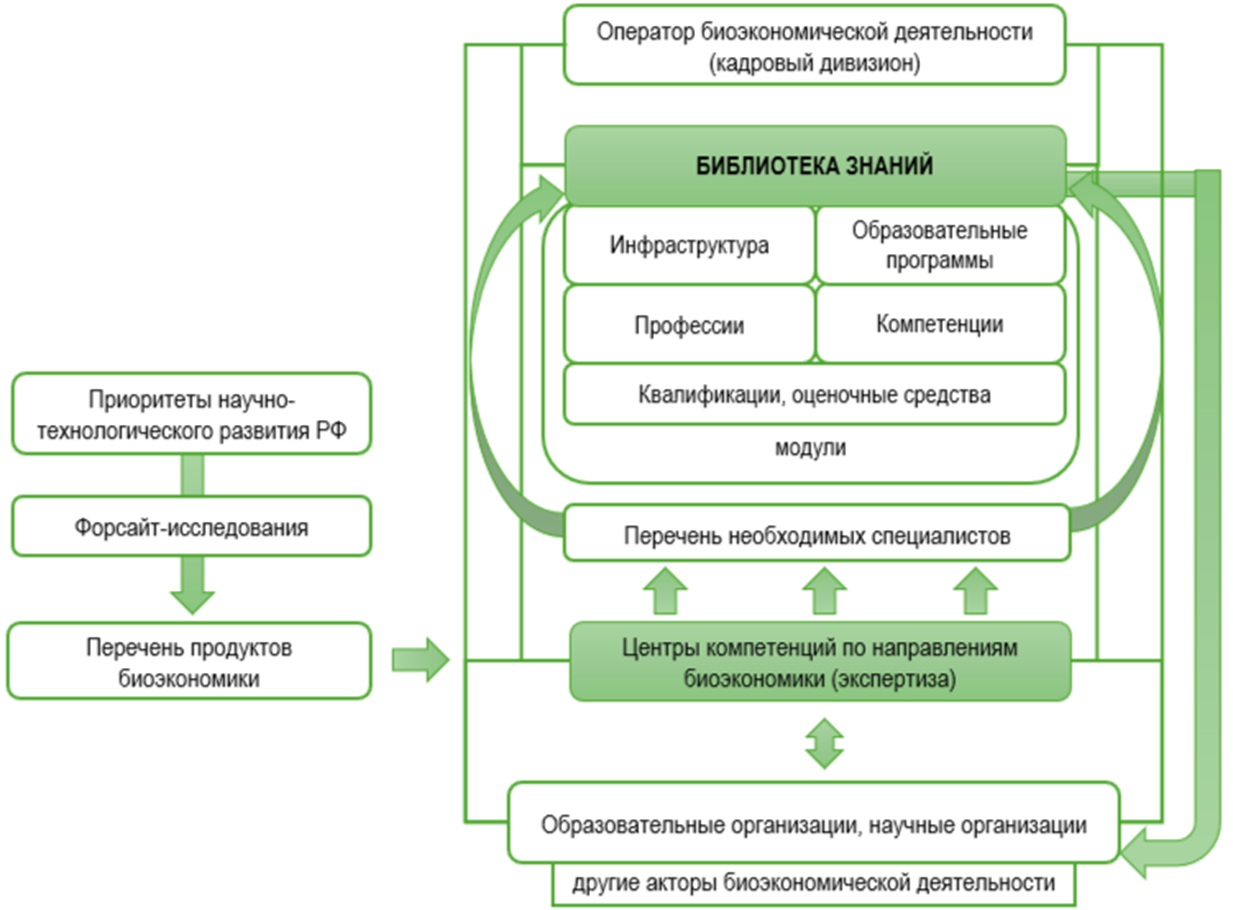 Это обстоятельство, а также широкая география России требуют организации единой, унифицированной системы организации подготовки кадров для высокотехнологических отраслей экономики, в том числе биоэкономики.