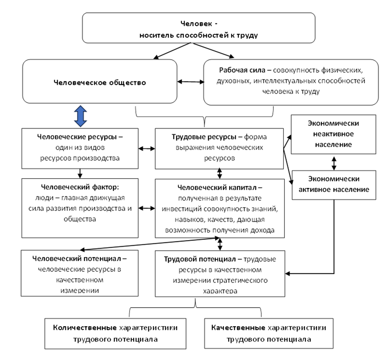 Рисунок 1 – Взаимосвязь трудового потенциала в системе трудовых категорий [2]
