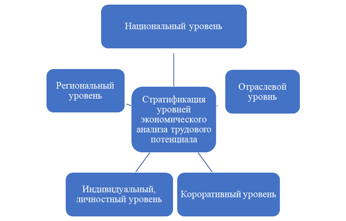 Рисунок 2. Стратификация уровней экономического анализа трудового потенциала [3]