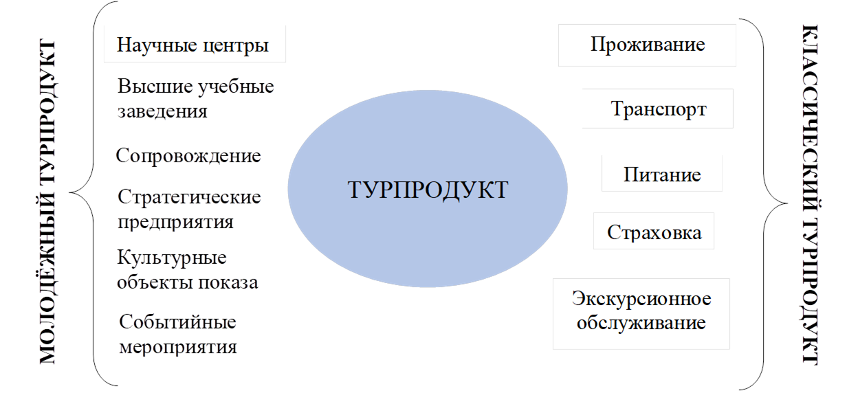 В связи с недостаточной разработанностью и отсутствием системного изучения молодёжного туризма, в данной работе предложена авторская модель организации молодёжного туристского продукта. Этот рисунок отражает ключевые компоненты, взаимосвязи и этапы формирования турпродукта, учитывая особенности и потребности молодёжной аудитории. Это позволяет структурировать процесс создания и продвижения молодёжных туристских услуг, а также обеспечивает более эффективное планирование и управление ими в современных условиях.