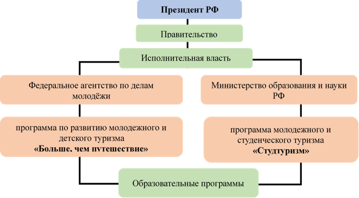 The article analyzes the structure and mechanisms of youth tourism in Russia. Special attention is paid to the legal regulation of this area, as well as existing programs and initiatives aimed at developing youth tourism. The article discusses various scientific approaches to defining the concept of youth and describes the features of its social structure and organization. The authors identify the main differences between a classical tourism product and a youth tourism product. The article describes the hierarchical structure of youth tourism regulation.