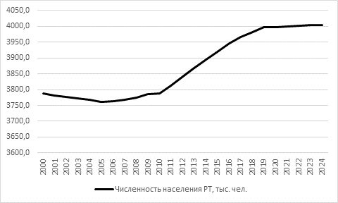 Рис. 3. Динамика численности населения по Республике Татарстан.