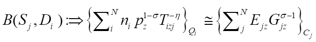 Наша модель охватывает множество пространственных эффектов, которые, как показано в работах Беренса, Винтерса, Чанга, Лайя, Трефлера [18; 30; 36] (Behrens, 2011; Lai, Trefler, 2002 Winters; Chang, 2000), являются основополагающими для понимания конкурентного ценового равновесия интегрированных рыночных систем.