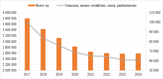 Рис. 5 – Количество активных предприятий с/х Российской Федерации