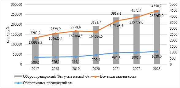 Оборот сельскохозяйственных предприятий является основным показателем, отражающим динамику развития отрасли, инвестиционную привлекательность и конкурентоспособность на внутреннем и мировом рынках (рис.8).