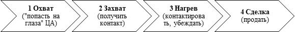 На основе использования принципов построения обеих моделей авторами предложен комбинированный подход к моделированию взаимодействия образовательной организации с потенциальным потребителем с учетом задач продвижения на 5 этапах клиентского пути в сфере бизнес-образования. К каждой группе из целевой аудитории, отличающейся по степени узнавания об организации или образовательной услуге, применяются особые маркетинговые инструменты привлечения. Их применение зависит от того, как высоко по лестнице поднялся потенциальный покупатель.