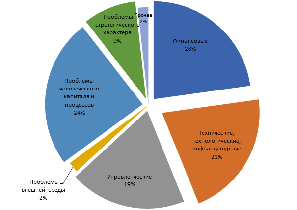 ¾ проблемы, связанные с человеческим капиталом: недостаток компетенций, сопротивление изменениям;