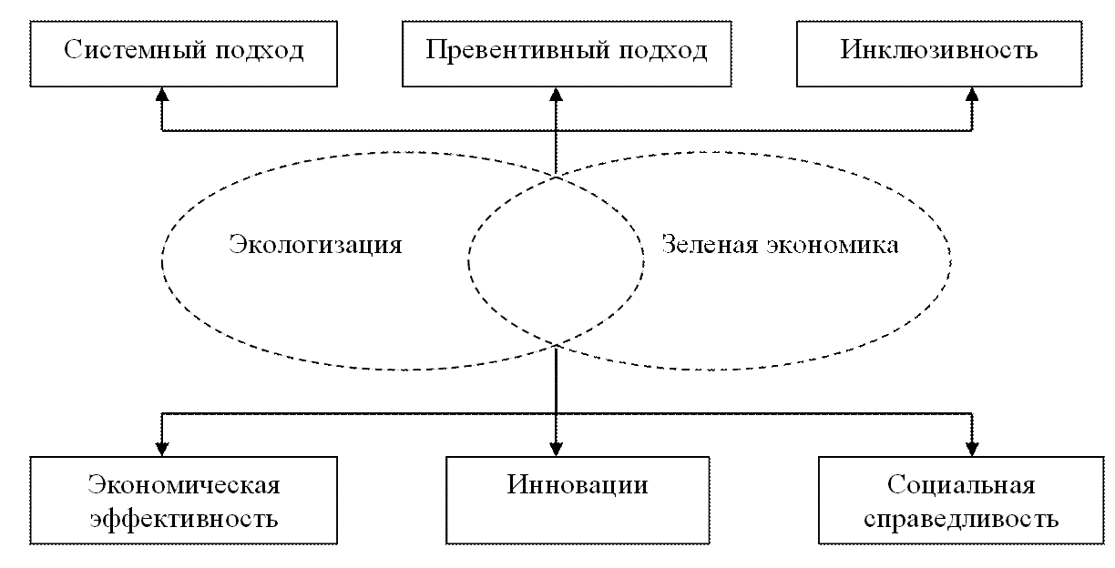Рисунок 1 − Принципы взаимодействия концепций экологизации и «зеленой» экономики (составлено автором)