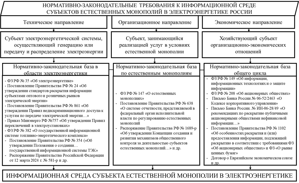 ТРЁХКОМПОНЕНТНАЯ КЛАССИФИКАЦИЯ НОРМАТИВНО-ЗАКОНОДАТЕЛЬНЫХ ТРЕБОВАНИЙ К ИНФОРМАЦИОННОЙ СРЕДЕ СУБЪЕКТОВ ЕСТЕСТВЕННЫХ МОНОПОЛИЙ В ЭЛЕКТРОЭНЕРГЕТИКЕ РОССИИ