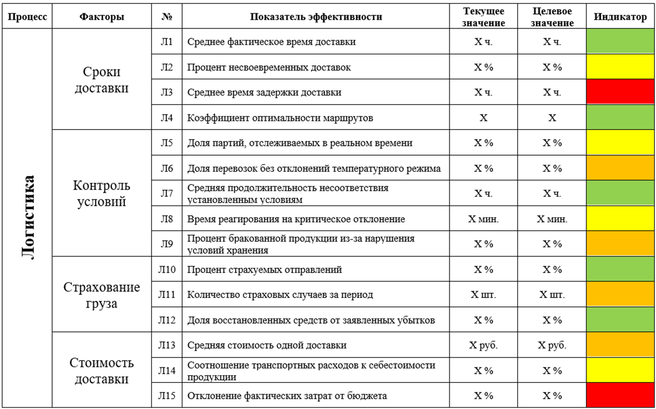 Формирование системы ключевых показателей эффективности цепи поставок скоропортящихся грузов