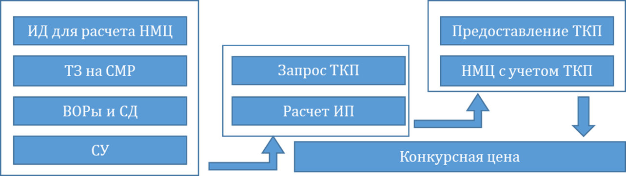 Рис. 1. Этапы расчета НМЦ. Составлено авторами (ИД – исходные данные, ИП – инициатор процедуры).