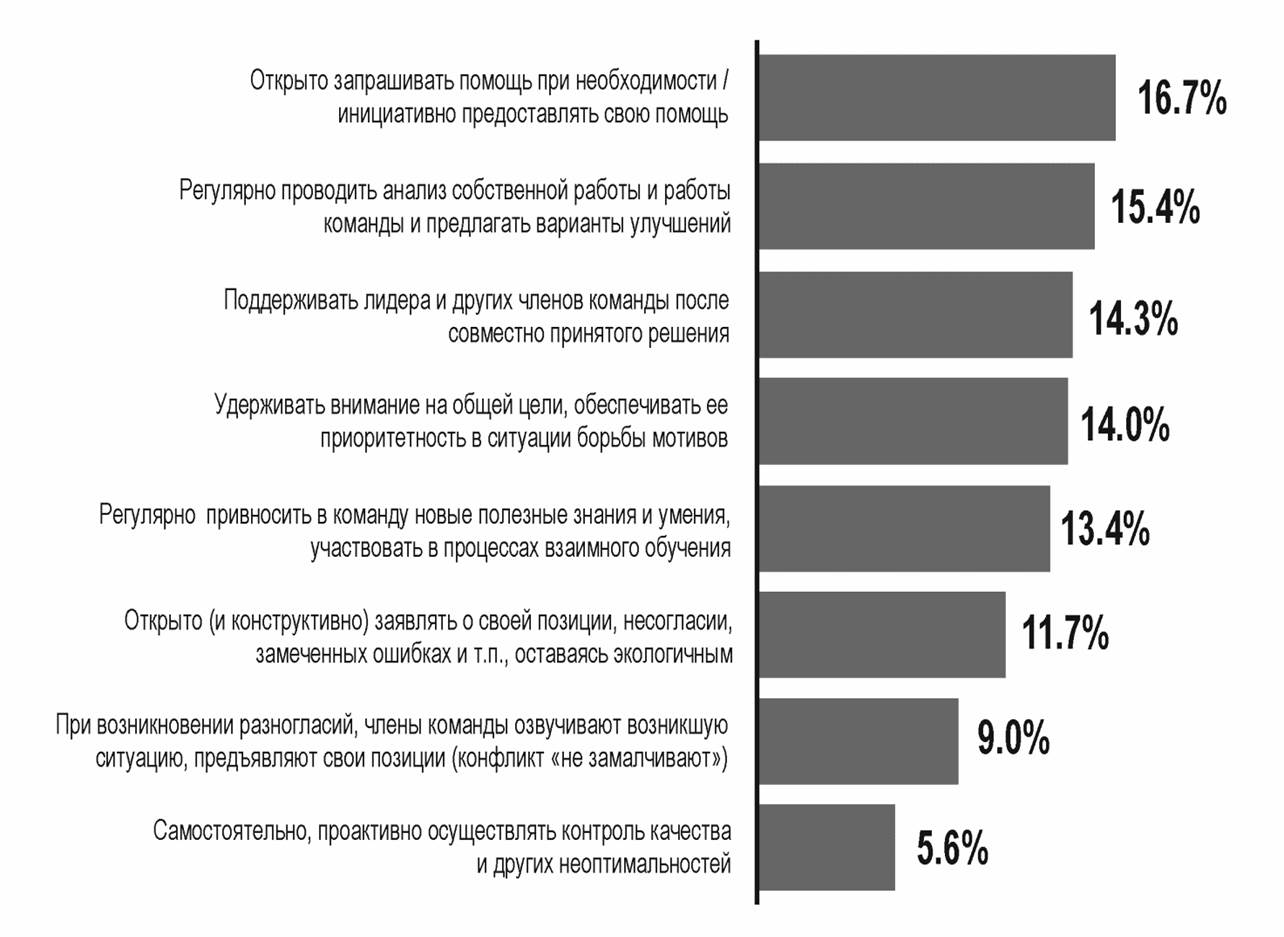 Вместе с тем, большим пробелом в изучении отечественного командного управления выступают вопросы формировании состава команд и создания действующих практик эффективных взаимодействия в них. Идентификация оптимального и результативного состава команд может проводиться в разных проекциях – от анализа личностных черт, универсальных компетенций, до демонстрируемого ролевого поведения и контекста декларируемой мотивации совместной работы.