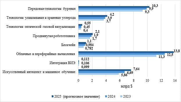 Таким образом, в условиях высоких инвестиционных вложений и роста значимости нефтегазового сектора в глобальной экономике особое значение приобретает внедрение современных технологических инноваций во все этапы производственного цикла для роста устойчивости. Инновационное развитие становится ключевым инструментом повышения эффективности, позволяя отрасли адаптироваться к новым вызовам рынкам [6]. В таблице 1 подробнее рассмотрим затраты на НИОКР крупнейших мировых и российских компаний.