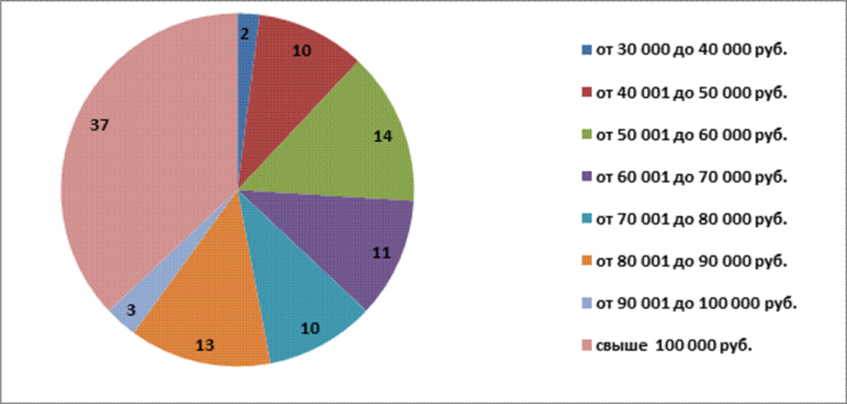 Из представленных на рисунке 5 результатов можно констатировать, что 40% респондентов оценивают свою труд более, чем 90 000 руб. в месяц. Практически половина молодых работников (48%) считают, что они должны получать заработную плату в диапазоне 50 000 – 90 000 руб. Далее при выявлении удовлетворенности молодежи действующей в организациях индустрии гостеприимства системой стимулирования и оплаты труда нами были получены следующие результаты: