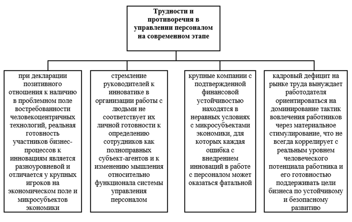 Рисунок 2 – Трудности и противоречия в управлении персоналом на современном этапе (составлено автором)