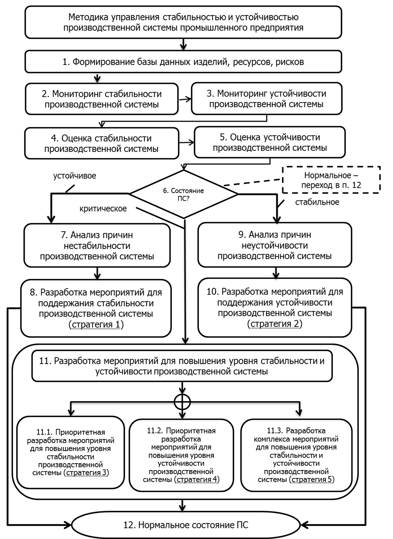 Рисунок 2. Методика управления стабильностью и устойчивостью производственной системы (ПС)